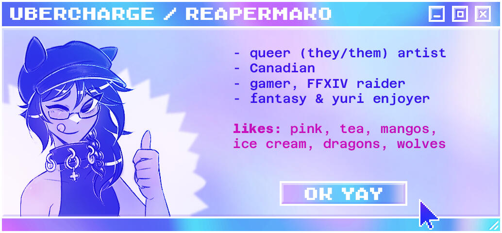 I'm Kite Lin, nonbinary Canadian artist. I make a bunch of art, mostly digital art of cute anime waifus. Most of it is posted to Tumblr, Patreon, and my Discord server where my wonderful yuri warriors live.I'm often inspired by fantasy fiction, anime, manga, and nature. I love monsters.